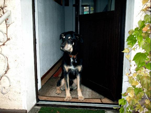 ( S- ) Tony Mitte November 2006 zog er ein . . . Er kommt aus einem Tierheim, wie alle meine Hunde. 11 Jahre war er Familienhund und wurde dann abgegeben. Natürlich ist es für den Opa ganz schön schwer sich noch mal eingewöhnen zu müssen; die Angst nochmal verlassen zu werden sitzt ganz schön tief. Aber er ist ein ganz lieber und lebhafter, dem man sein Alter nicht anmerkt. |