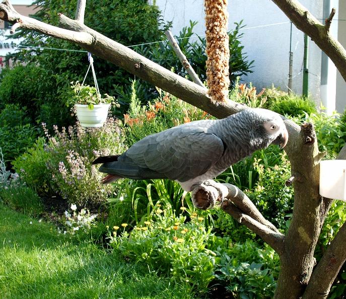Molly 1992 kam sie -etwa 2jährig- zu uns; leider ist sie seit dem Frühjahr 2004 alleine, da kurz nacheinander meine anderen Graupapageien gestorben sind.